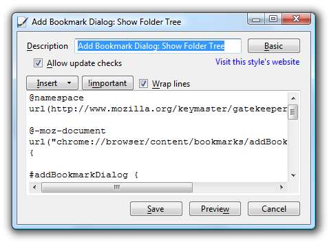É tão simples quanto instalar o Adicionar estilo de usuário da caixa de diálogo aos favoritos … Clique no botão para carregar no Stylish: