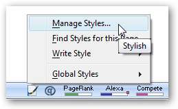 Como esse estilo de usuário é para a interface do usuário, ele não aparecerá no pop-up normal de Stylish, então você terá que ir para Gerenciar estilos