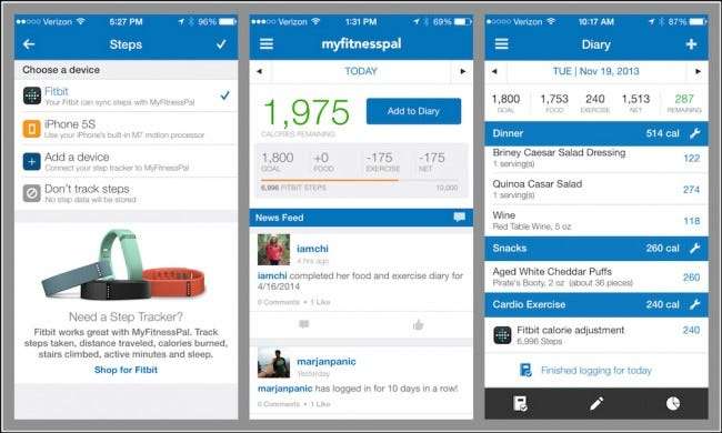 Como o Runtastic, o MyFitnessPal sincroniza com muitos dos periféricos externos mais populares para auxiliar no rastreamento de suas estatísticas, incluindo o FitBit, PEAR e Wahoo’s TICKR.