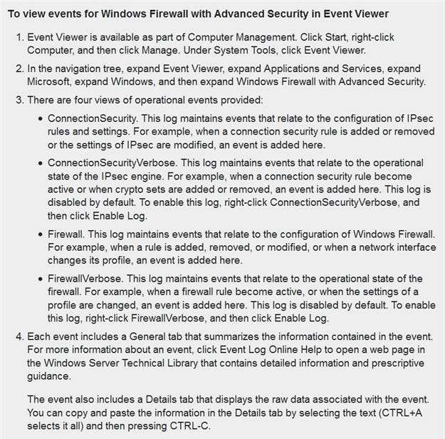 Fonte: Visualizando eventos de firewall e IPsec no Visualizador de eventos