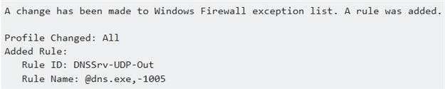 “4946: Uma alteração foi feita na lista de exceções do Firewall do Windows. Uma regra foi adicionada. ” Por exemplo: