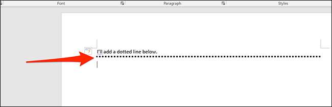Agora, pressione ENTER e o Word converterá seus asteriscos em uma linha pontilhada automaticamente.
