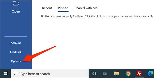 Comece abrindo o Word no seu Windows ou Mac Computer. No canto inferior esquerdo da janela, selecione "Opções". Se você já tiver um documento aberto, selecione o menu Arquivo para revelar o comando "Opções".