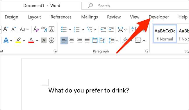 A opção para adicionar uma lista suspensa está localizada no menu de desenvolvedor do Word. Este menu está oculto por padrão, então você terá que ativá-lo antes de adicionar uma lista.