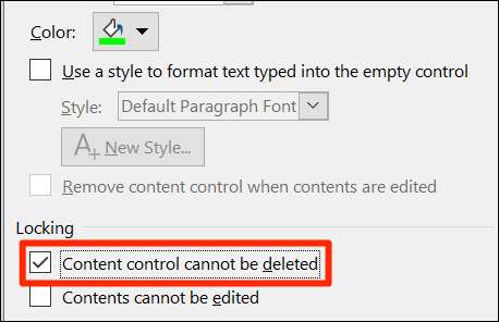 Para remover esta lista suspensa do documento, selecione a lista. Em seguida, a partir da seção "Controls" no topo, clique em "Propriedades". Desativar o "Controle de conteúdo não pode ser excluído" e clique em "OK" na parte inferior.
