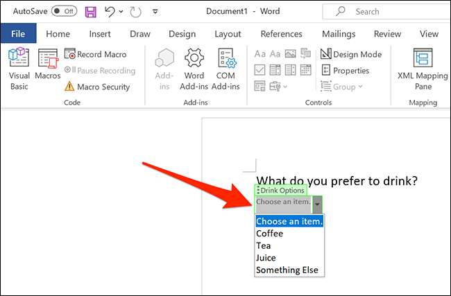 Uma lista suspensa em um documento do Microsoft Word permite que as pessoas selecionem em uma lista de itens predefinidos. Adicionando esta lista suspensa é bastante fácil, e mostraremos como fazer isso.