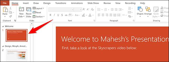 Na janela PowerPoint, na barra lateral esquerda, clique no slide no qual você deseja adicionar um vídeo.