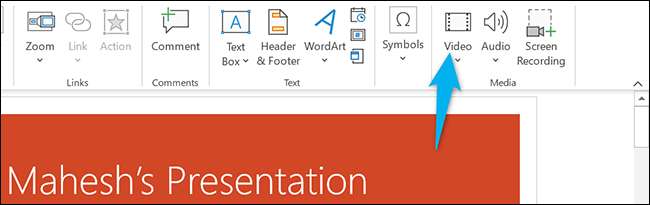 Na guia "Inserir", na seção "Mídia" (que é para o lado direito extremo da interface), clique em "Vídeo".