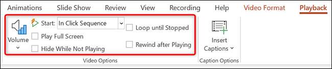 Por exemplo, para alterar como seu vídeo é iniciado a jogar em sua apresentação, clique no menu suspenso "Iniciar" e selecione uma dessas opções: