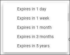 Os tempos de expiração variam de um dia a cinco anos. Selecione o tempo de expiração desejado clicando nele.