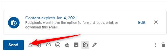 Em seguida, na parte inferior da janela de composição, clique no botão de bloqueio que tem um relógio na frente dele. Este é o ícone do modo confidencial.