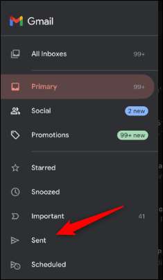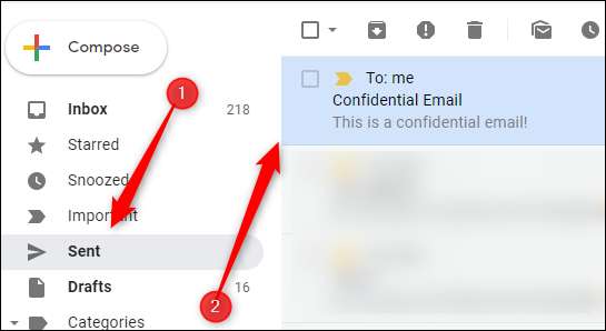 Se você quiser remover o acesso ao e-mail antes da data de expiração definida, clique em "Enviado" no painel à esquerda e selecione a mensagem com a data de expiração da lista de e-mails.
