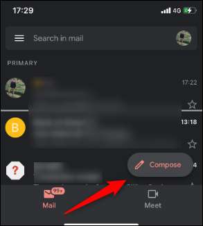 Para fazer isso, faça o login na sua conta do Gmail no aplicativo móvel e toque em "Compor" no canto inferior direito da tela.