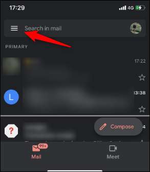 Se você quiser remover o acesso ao e-mail antes da data de expiração definida, toque no ícone do menu Hamburger de três linhas no canto superior esquerdo da guia "Mail".