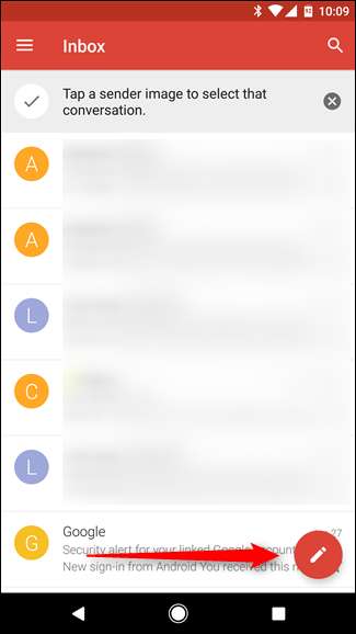 Com o arquivo em mãos, você está pronto para anexar aquele bad boy. Vá em frente e abra o Gmail e abra um novo e-mail tocando no ícone de lápis no canto inferior. A menos, é claro, que você esteja tentando adicionar o anexo a uma resposta; nesse caso, você simplesmente tocará no botão "responder".