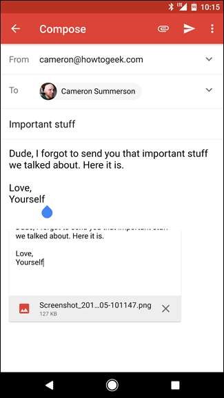 Agora, para aqueles que fazem isso com frequência, é uma tarefa simples. Mas, para alguém que nunca precisou anexar algo a um e-mail de seu telefone, pode ser um pouco não intuitivo. Na verdade, eu tive que explicar isso muito recentemente para algumas pessoas próximas a mim.