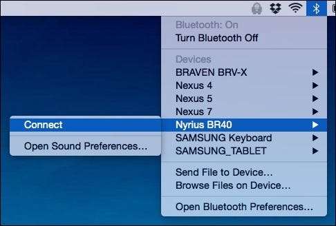 A partir daí, você pode se reconectar usando as preferências do sistema Bluetooth ou pode clicar no símbolo do Bluetooth na barra de menus.