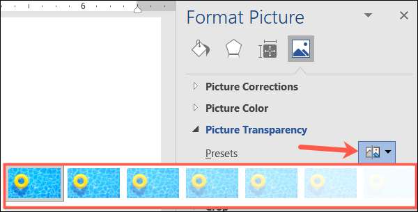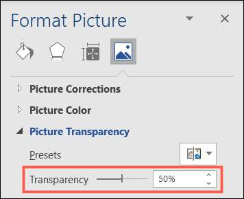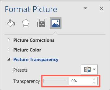 Abra a barra lateral de formato usando um dos métodos acima e expanda Transparência da imagem.