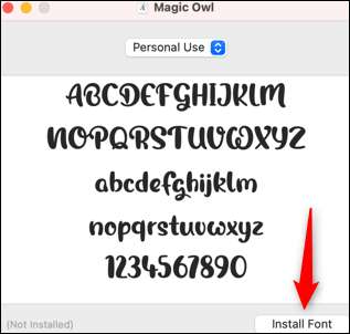 A janela de pré-visualização da fonte aparecerá. Clique em "Instalar fonte" no canto inferior direito da janela.