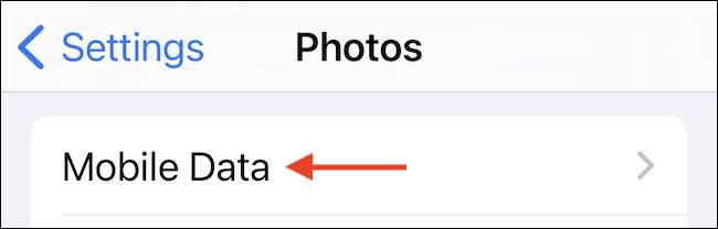 Você também pode personalizar como o recurso de fotos do iCloud usa dados celulares. Na página "Fotos", vá para a seção "Dados celulares" (pode ser rotulada como "dados móveis" em algumas regiões.).