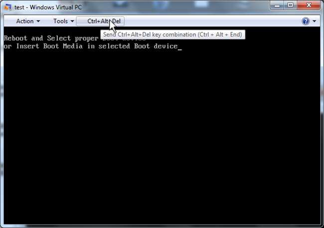 Primeiro, clique no botão Ctrl + Alt + Del em sua máquina virtual para que ela possa reiniciar.