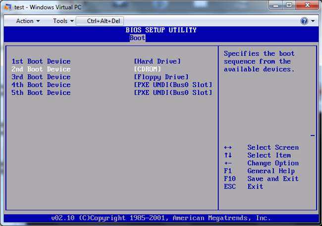 Use as teclas + e - para selecionar seu dispositivo de inicialização principal. Assumindo que você usará um CD, DVD ou arquivo ISO, você deve selecionar seu dispositivo de CD-ROM como primeiro dispositivo de inicialização.