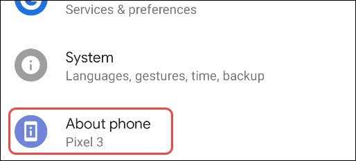 Em seguida, role para baixo e selecione "Sobre o telefone". Dependendo do seu dispositivo, você pode ter que ir para "System" antes de ver a seção "Sobre Telefone".