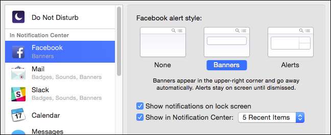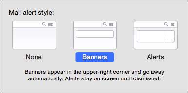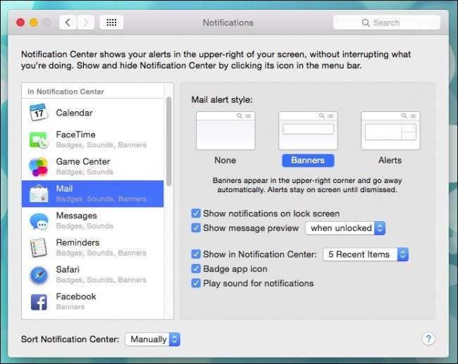 Abaixo dos estilos de alerta, você verá outras opções específicas do aplicativo. O que você vê aqui varia de aplicativo para aplicativo, mas com o Mail você recebe o tratamento completo.