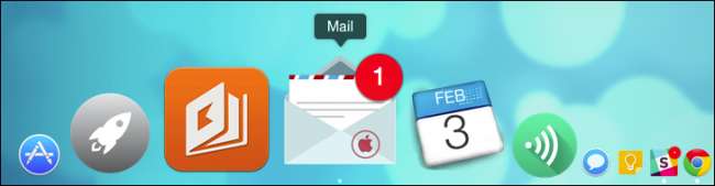 Você também pode desligar os sons para as notificações desse aplicativo, exibir ícones de aplicativos de emblema e decidir quantas notificações recentes serão exibidas na Central de Notificações. Se você optar por exibir ícones de aplicativos de emblema, você verá emblemas sobrepostos em seus ícones de aplicativo, como aqui com o contador de mensagens não lidas do nosso aplicativo Mail.