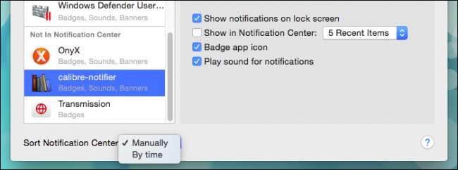 Por fim, você pode classificar como as notificações aparecem na Central de Notificações, por data ou manualmente. Se você classificar manualmente, poderá clicar e arrastar os aplicativos na ordem que desejar. Dessa forma, os aplicativos primeiro ou próximos ao topo aparecerão acima dos outros.