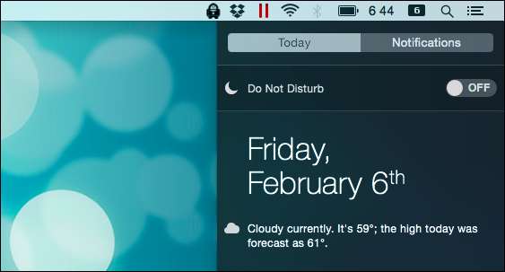 Já que temos falado muito sobre isso, devemos finalmente passar algum tempo discutindo a Central de Notificações. A Central de Notificações pode ser acessada clicando nas três linhas na borda direita da barra de menu, ou você pode deslizar para a esquerda a partir da direita no trackpad com dois dedos.