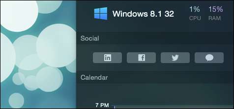 Observe também que no painel Hoje há uma seção Social que você pode usar para atualizar seu status via LinkedIn, Facebook, Twitter e Mensagens. Antes de usar esta seção, no entanto, você deve adicionar contas ao OS X através das preferências do sistema Contas da Internet .