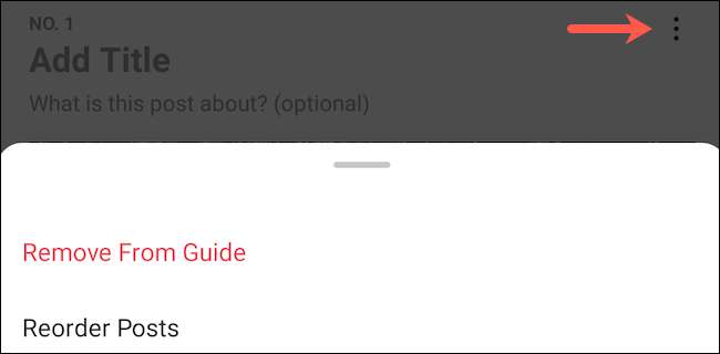 Para remover um local ou editar a ordem do lista, toque no menu de três pontos ícone disponível ao lado de um post.