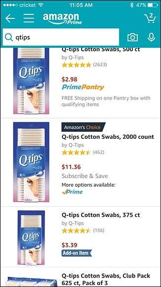 Encontre-o na lista de resultados de pesquisa e certifique-se de que é elegível para Prime (o logotipo Prime aparecerá abaixo do preço).
