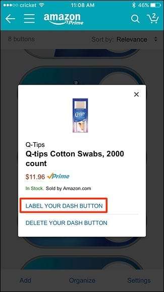 Você também pode dar ao botão Dash um rótulo personalizado tocando em seu logotipo e selecionando “Label Your Dash Button”.