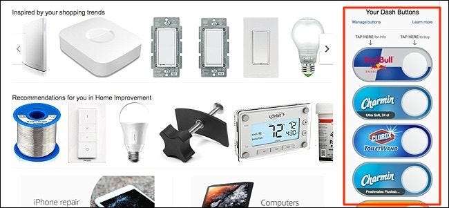 Comece visitando o Página inicial da Amazon e à direita você verá vários botões do Dash.