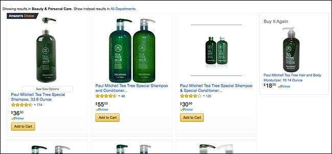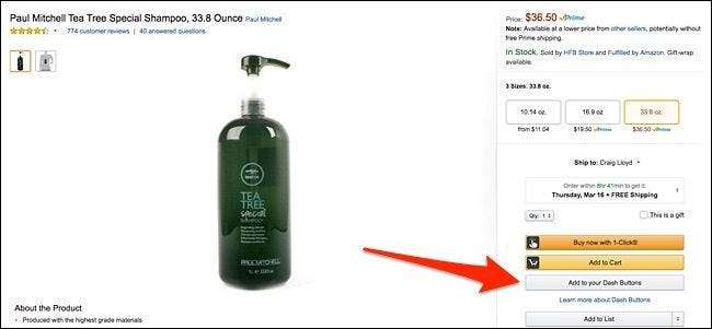 Pesquise qualquer produto para o qual deseja criar um botão Dash - não importa se existe um botão Dash físico para ele ou não.