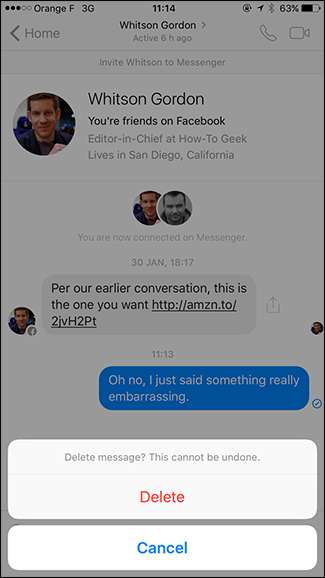Como excluir uma mensagem do aplicativo móvel do Facebook Messenger