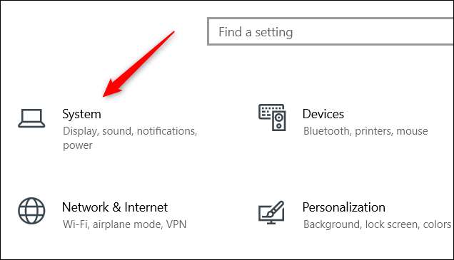 A janela Configurações será aberta. Aqui, clique na opção "System".