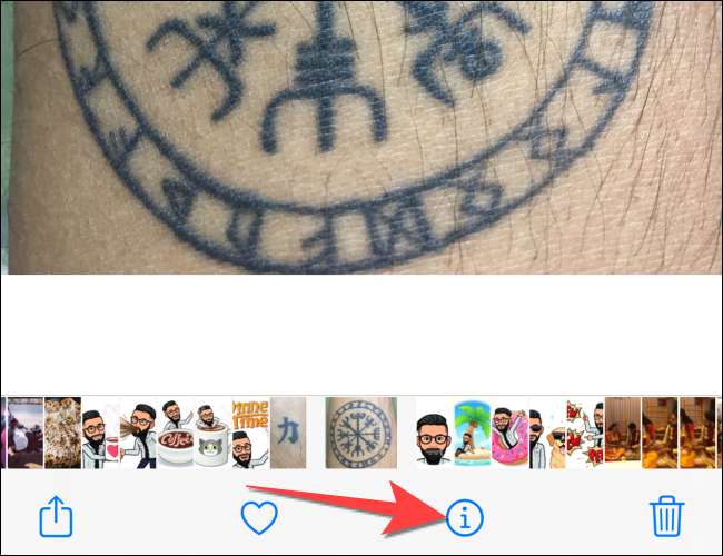 Toque no ícone "i" com um círculo ao redor ou deslize na foto para ver suas informações.