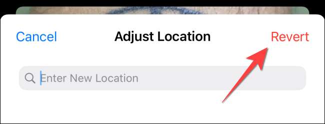 Em seguida, selecione "Revert" para restaurar o local original como marcado pelo aplicativo da câmera.