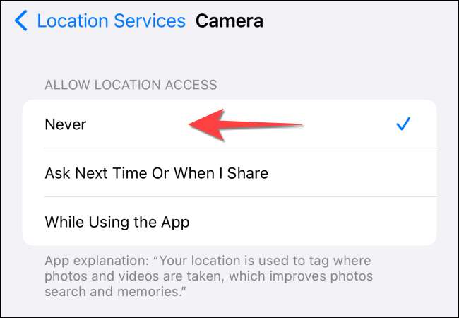 Feche o aplicativo "Configurações". Agora você não terá que se preocupar com detalhes de localização enquanto tirando fotos.