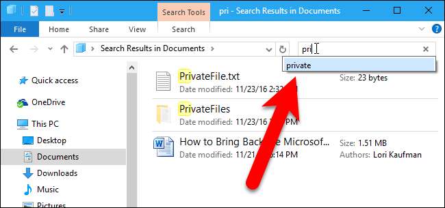 Conforme você digita na caixa Pesquisar no Explorador de Arquivos do Windows, uma lista de sugestões é exibida abaixo da caixa. Essas sugestões são do histórico de pesquisas anteriores que você digitou.