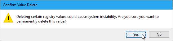 A chave não danificará seu sistema, então clique em “Sim” para confirmar a exclusão do valor.