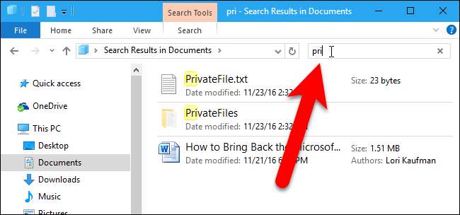 Para limpar um termo de pesquisa específico do histórico de pesquisa no Windows 7, 8 ou 10, comece a digitar esse termo de pesquisa na caixa Pesquisar. Em seguida, use a tecla de seta para baixo para começar a rolar pelos termos que correspondem ao que você digitou. Depois de selecionar o termo que deseja remover do histórico de pesquisa, pressione a tecla “Excluir”.