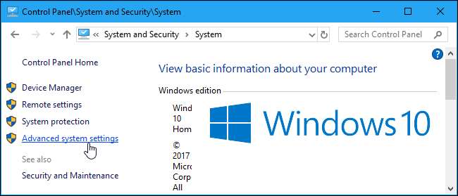 Você encontrará essa alternância na janela Propriedades do sistema. Para abri-lo, vá para Painel de Controle> Sistema e Segurança> Sistema> Configurações avançadas do sistema.
