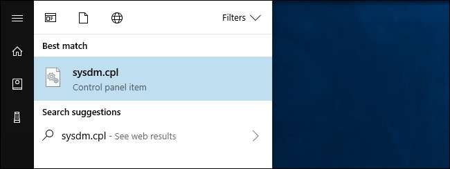 Você também pode clicar em Iniciar, digitar “sysdm.cpl” na caixa de pesquisa e pressionar “Enter” para abrir esta janela instantaneamente.