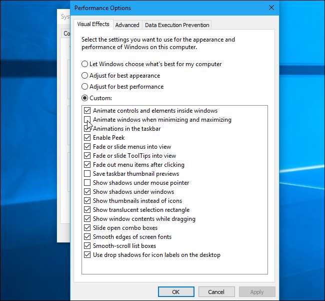No Windows 10, parece que essa opção também controla a animação do menu Iniciar. No entanto, alternar essa opção não desabilitará mais a animação do menu Iniciar nas versões modernas do Windows 10. Ela só controla as animações das janelas da área de trabalho.
