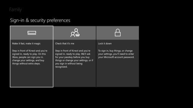 Em seguida, você passará pelas telas normais de configuração da conta - política de privacidade, preferências de login e segurança, personalização, configuração do Kinect (se você tiver um Kinect) e configuração do Xbox Live Gold. Você pode querer bloqueie seu perfil do Xbox com um PIN para mais segurança.