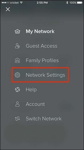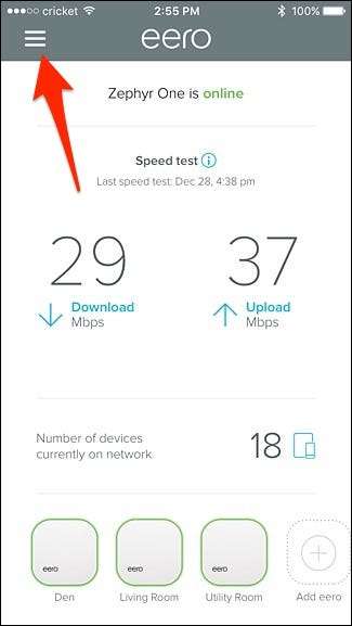 Para começar, abra o aplicativo Eero e toque no botão de menu no canto superior esquerdo da tela.